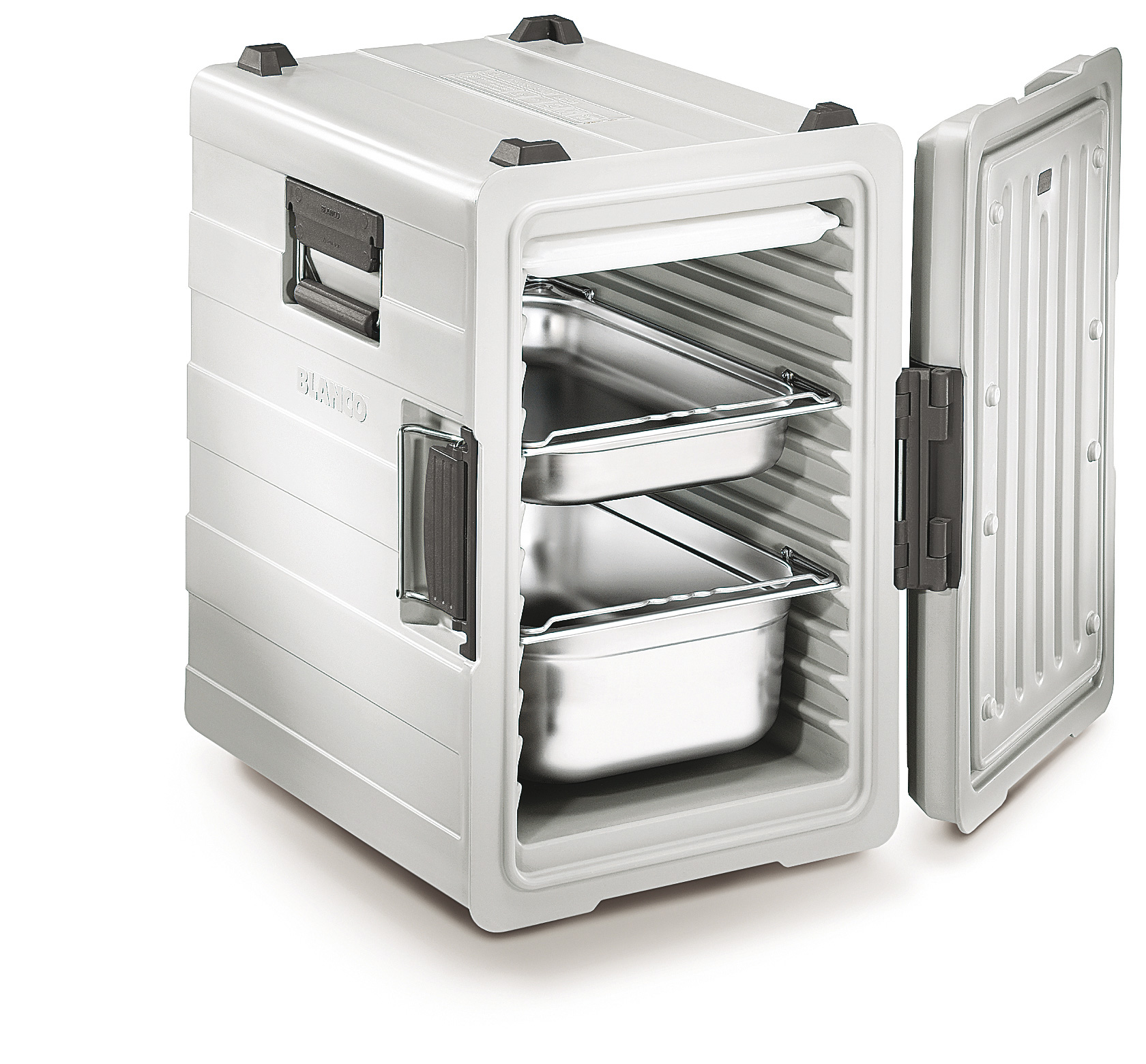 Caisson de transport de repas en polypropylène, avec porte battante pivotant sur 270 ° – 3 x GN 1/1 – 150 – 12 paires de glissières – Écartement de 39 mm, 15kg