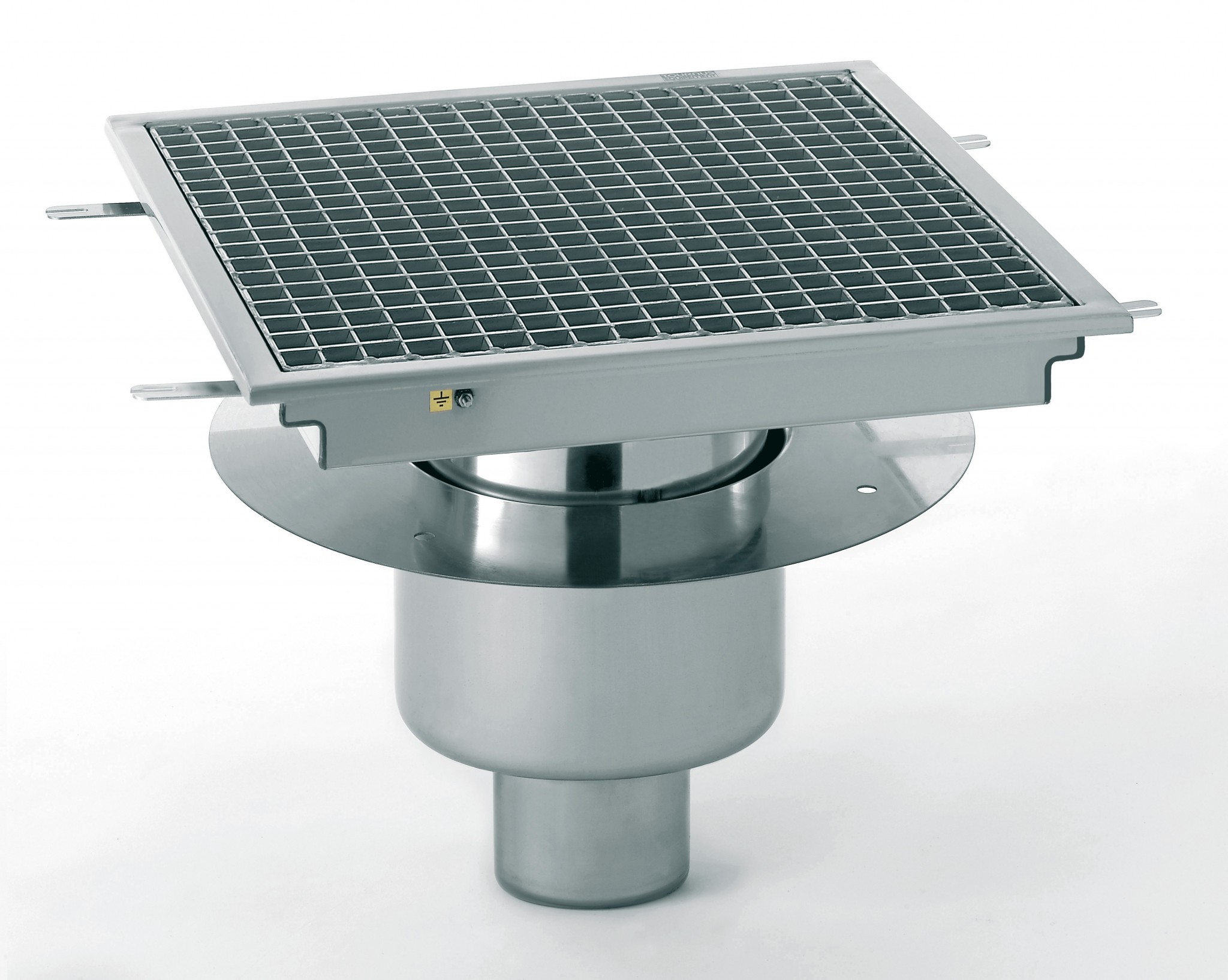 Cuvette réglable – Caillebotis inox sol carrelé ou résine – Caillebotis mailles 19×19 mm – Panier à déchets indépendant – Cuvette support caillebotis réglable – Siphon amovible avec joint torique – Boîtier avec collerette pour reprise d’étanchéité – Sortie diamètre 100 mm débit : 4 litres/seconde