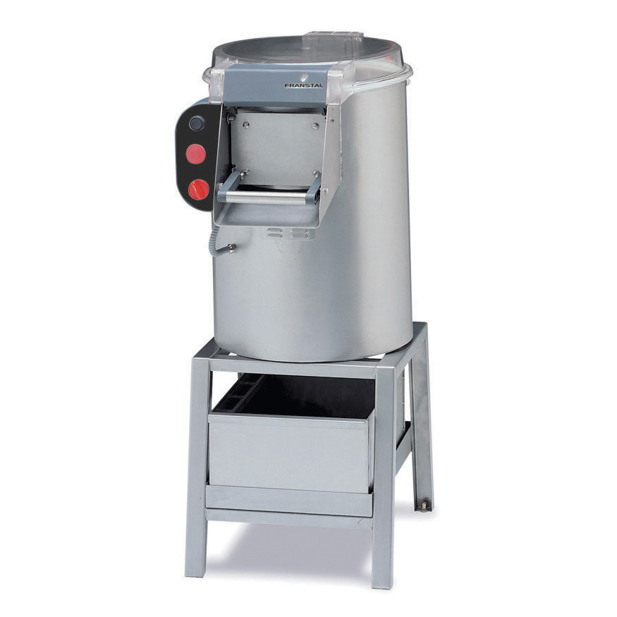 Fabrication en inox.Abrasif de plateau et latéral par 3 mélangeurs abrasifs permettant une meilleure rotation et une économie de la matière de 6% à 8%. Système anti retour. Contact auxiliaire pour une électrovanne extérieure. Protection IP85 Minuterie 0-6 minutes Production 200/240 kg/h Livrée sans socle et filtre anti-mousse
