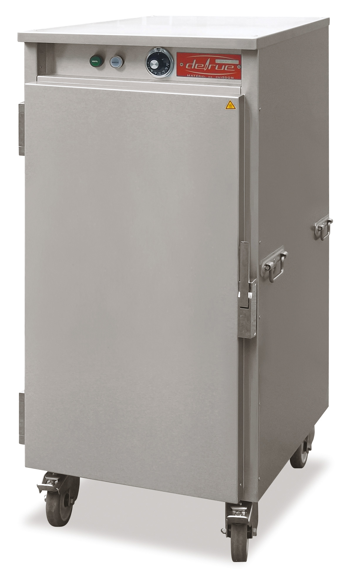 Chariot chauffant ventilé isolé de 12 étages 600×400 espacés de 70 mm, permettant le maintien et remise en température. Construction autoporté en acier inoxydable. Thermostat 60-200° et voyants. Agencement intérieur mobile pour faciliter l’entretien.