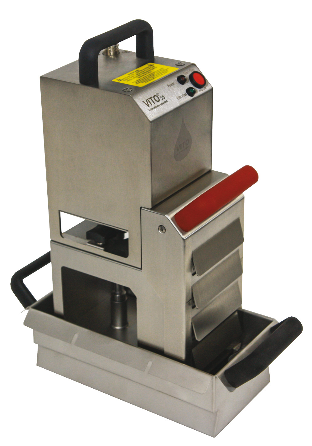 Filtre à lhuile de friture – micro filtration jusquà 5 µm. – Capacité de filtration jusquà 35 l/ min – Profondeur dAspiration env. 20 cm – Inox 1.4301 – Poids 6,3 kg
