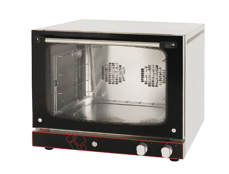 Four à air pulsé – Intérieur et extérieur inox – Système électromécanique – Température maximum de 250°C – Dimensions intérieures : 450x340x345 – Rack démontable pour nettoyage facile – Capacité : 4 x (430×340) – Thermostat de sécurité – Minuterie : 0 à 60 mn et mode continu – Lumière intérieure – Porte double vitrage démontable – Distance entre les niveaux : 80 mm