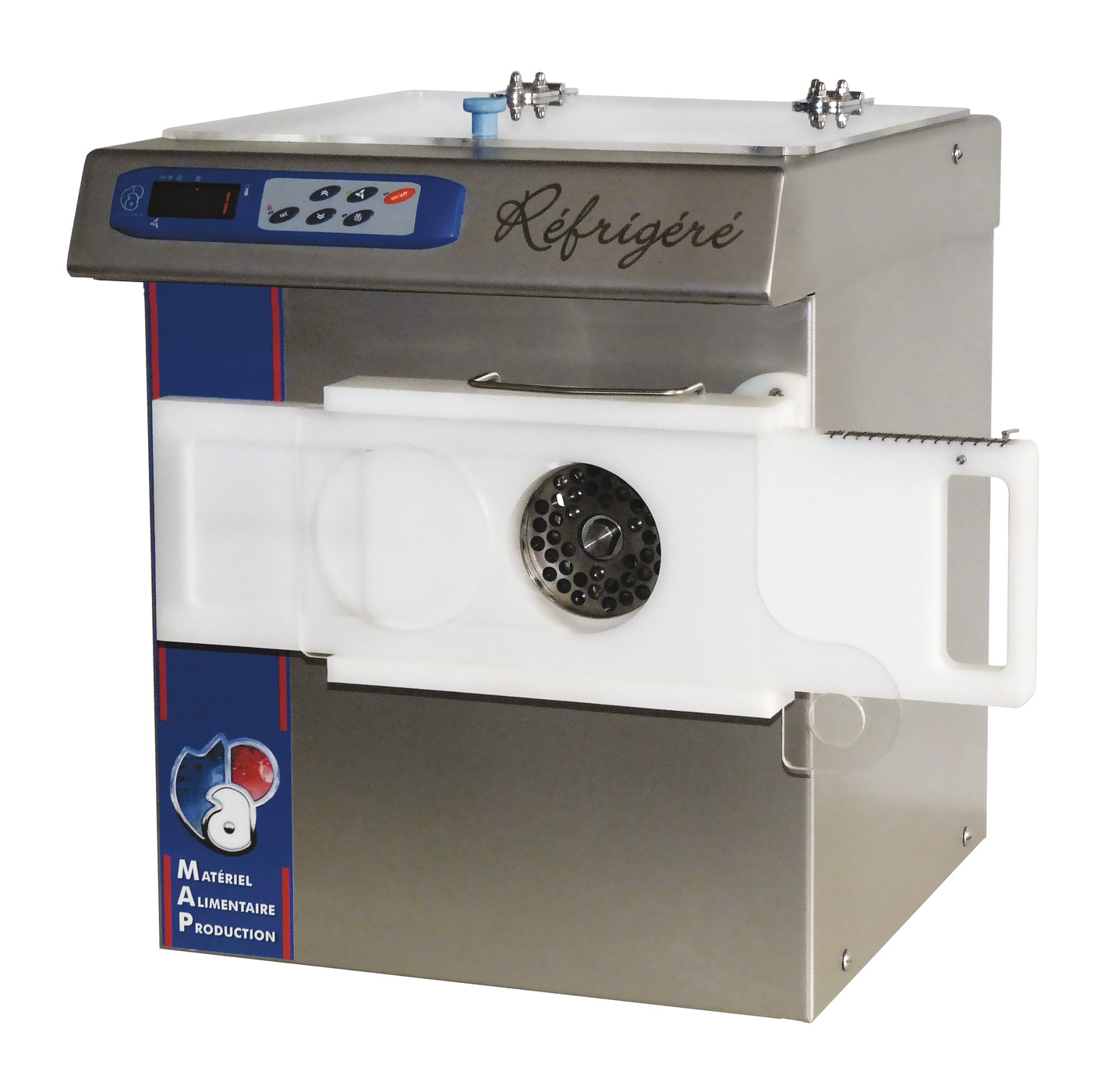 – Hachoir réfrigéré COMPACT, spécial TARTARES Construction inox AISI 304. Système UNGER double coupe H82 avec grille N° 3. Verrouillage du corps par clavetage. Réserve réfrigérée. Froid de contact à haut rendement, température -1+5°C classe 3M1. Fluide frigorifique R 134A.