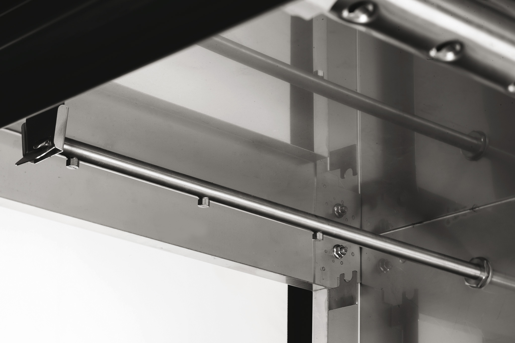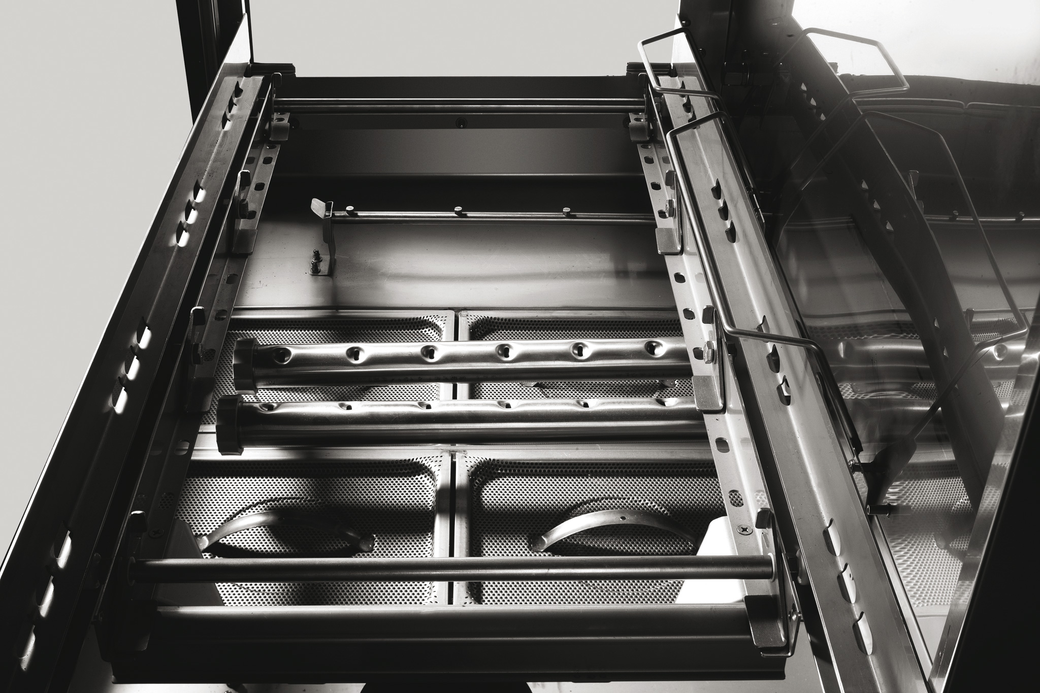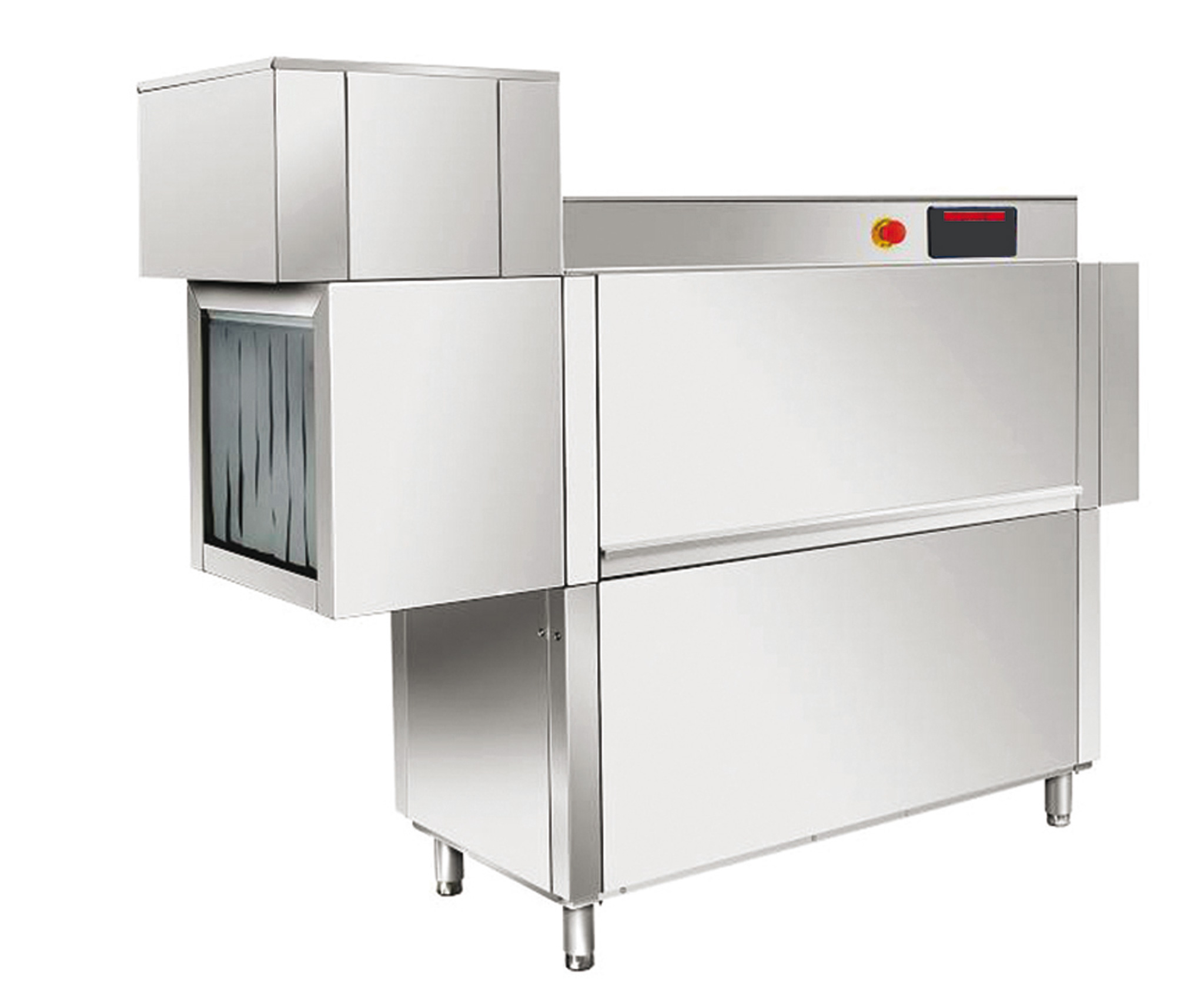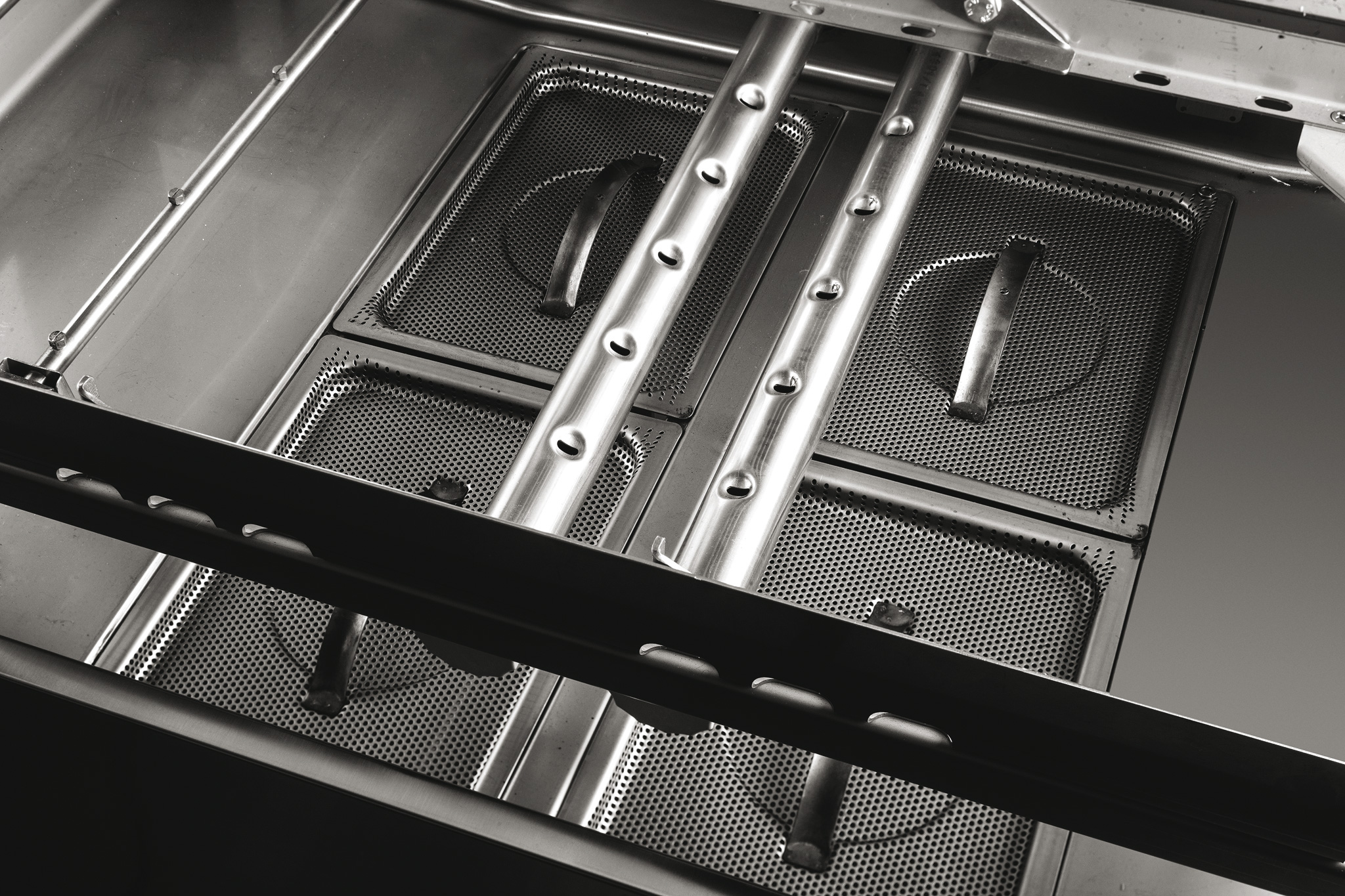 Entrée gauche: lavage/rinçage. 70/100 casiers/h. Construction acier inox AISI 304. Cuve angles arrondis avec filtres inox. Portes isolées et balancées Système davancement inox. Pompe autonettoyante. Economiseurs fonctionnement par zone. Rideaux inclus. Autotimer activable. Commande en façade à touches sensitives. Surchauffeurs isolés acier inox AISI 304. Dotation: 1plat +1verres +1plateaux +1couverts.