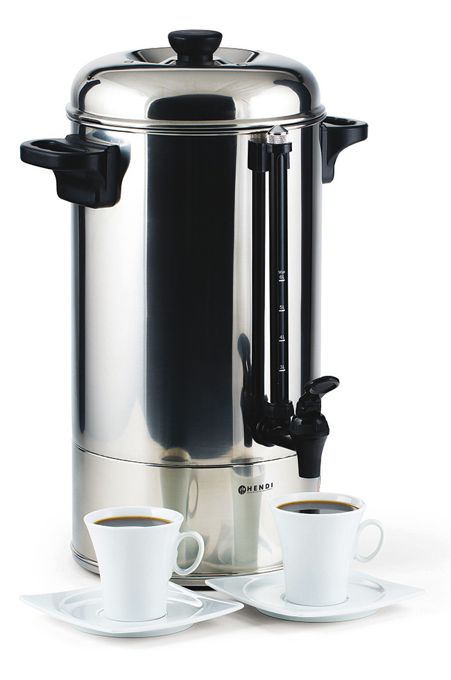 Modèle à simple paroi. Pour faire une grande quantité de café en une seule fois. Utilisez du café moulu standard dans le filtre intégré. Fonctionnement automatique et le café est maintenu à la température de service. Avec indicateur de niveau en verre, ro