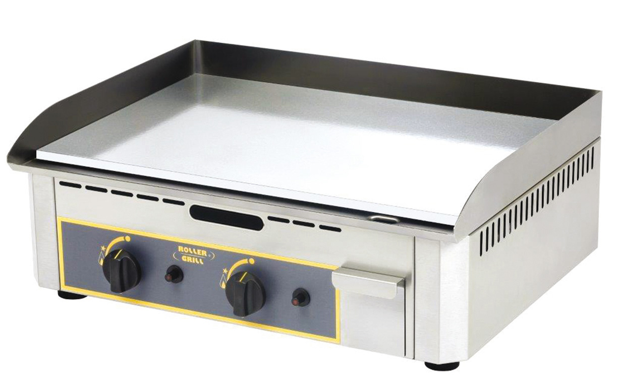Plaque de cuisson en acier (10 mm) chromé. Revêtement chromé par polissage. Cuisson par contact. Cuisson saine rapide et homogène sans perte de chaleur en périphérie grâce aux brûleurs en étoile. 2 zones indépendantes de cuisson. Surface utile: 600 x 400 mm. Evacuation des graisses dans le tiroir amovible (1L). Allumage Piezo, boutons de régulation, thermocouples de sécurité. Livré en butane/propane avec pochette dinjecteurs GN. Puissance Gaz 6.4 kW
