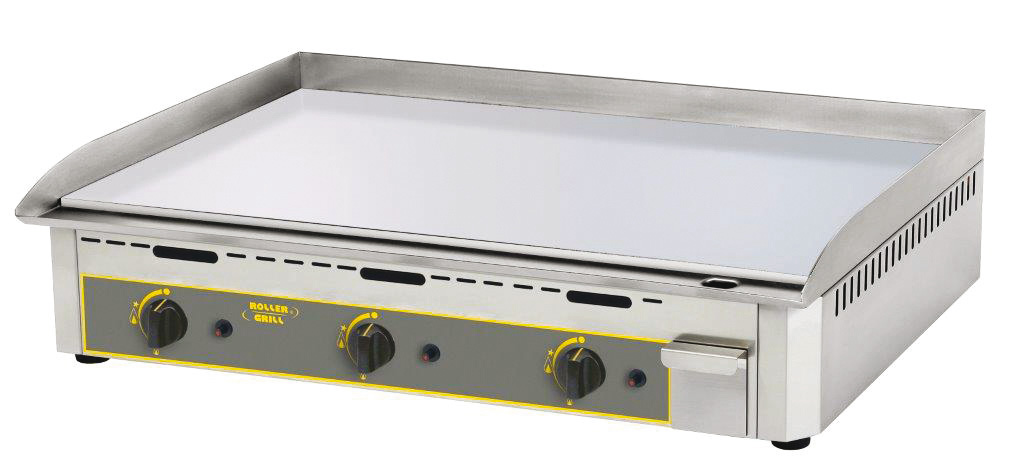Plaque de cuisson en acier (10 mm) chromé. Revêtement chromé par polissage. Cuisson par contact. Cuisson saine rapide et homogène sans perte de chaleur en périphérie grâce aux brûleurs en étoile. 3 zones indépendantes de cuisson. Surface utile: 900 x 400 mm. Evacuation des graisses dans le tiroir amovible (1L). Allumage Piezo, boutons de régulation, thermocouples de sécurité. Livré en butane/propane avec pochette dinjecteurs GN. Puissance Gaz 9.6 kW