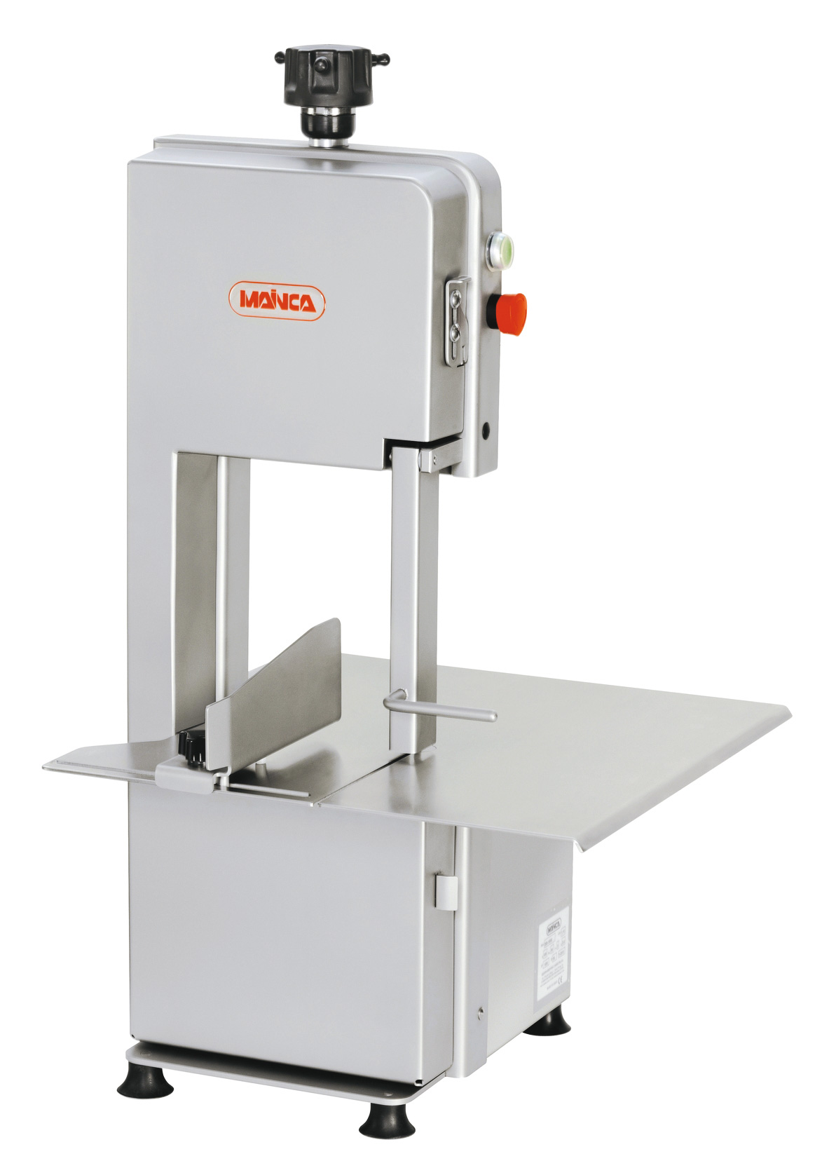 Construction inox AISI 304. Roulements en inox. Surface intérieure entièrement plane et lisse avec angles ajourés pour un meilleur nettoyage. Protecteur de lame à bascule. Tendeur de lame à débrayage automatique. Bac récupérateur de sciure. Moteur ventilé avec frein moteur auxnormes CE. Contacteur de sécurité de porte. Bouton marche / arrêt basse
