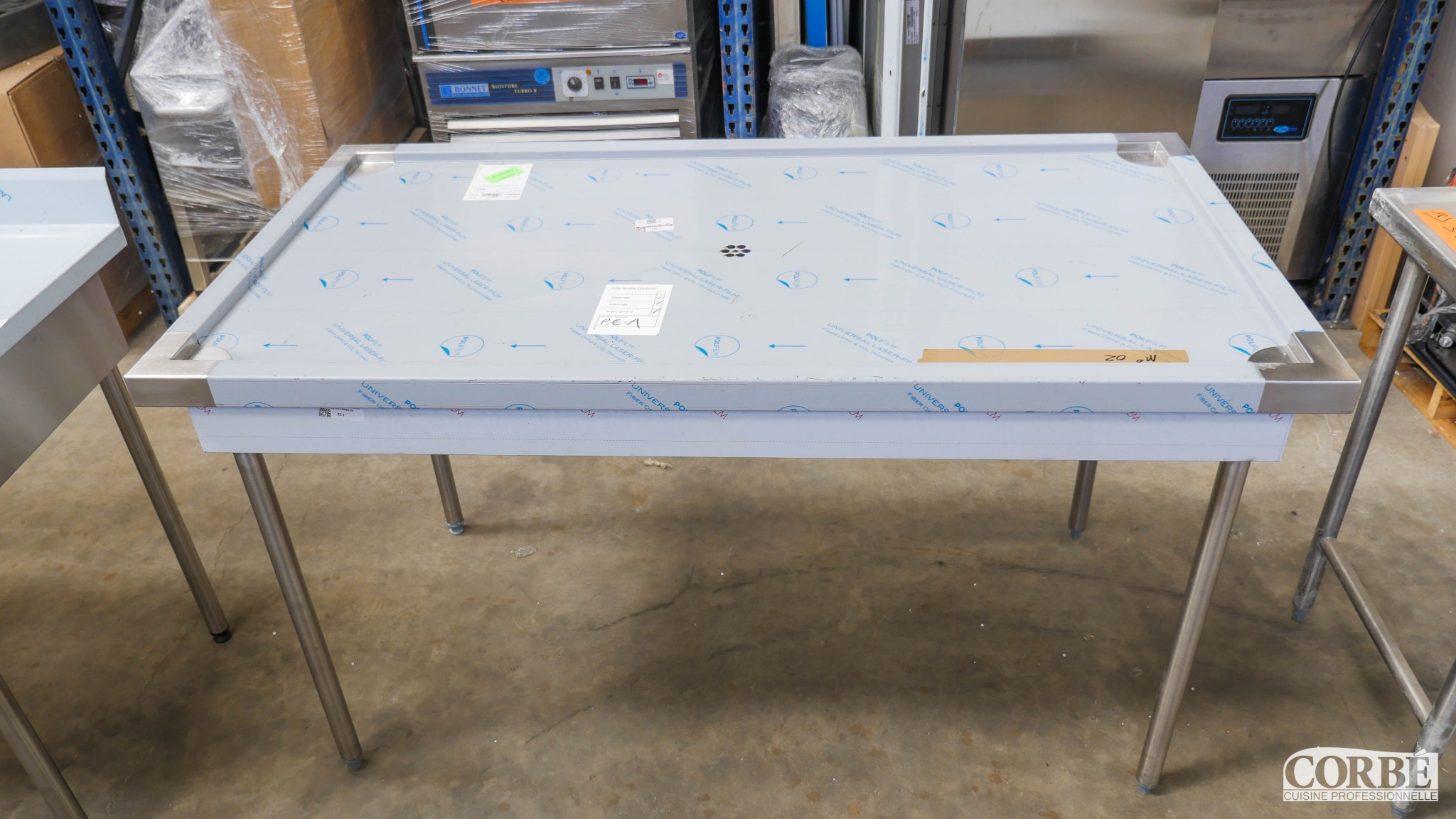 Table standard en inox avec 4 bords anti-ruissellement et une pointe diamant