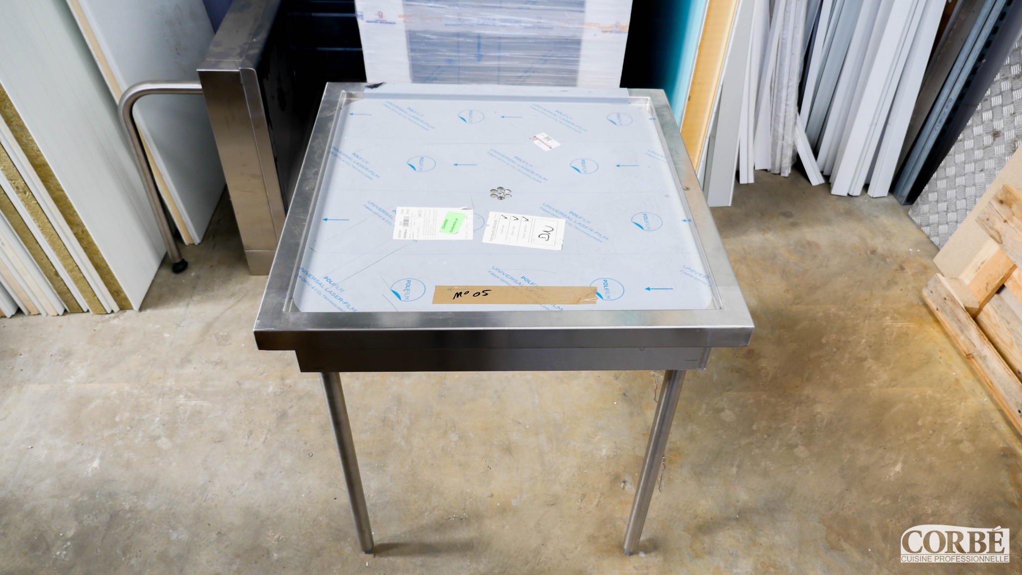 Table standard en inox avec 4 bords anti-ruissellement et une pointe diamant