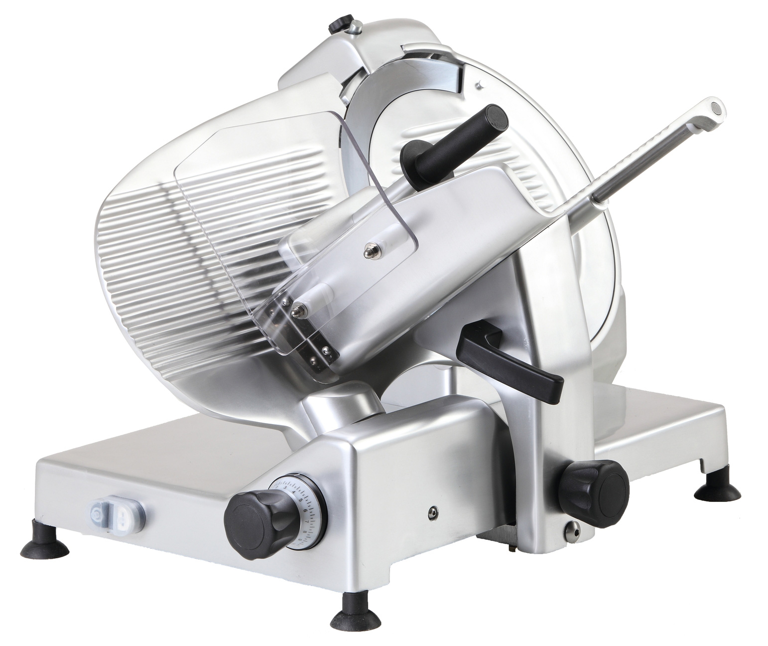 Construction en aluminium anodisé. Entraînement par pignons hélicoïdaux. Moteur ventilé de grande puissance. Lame en acier trempé chromée. Anneau de sécurité protège lame « CE ». Affûteur aluminium incorporé. Réglage de lépaisseur de coupe de 0 à 16 mm. Mise en marche / arrêt par bouton poussoir basse tension