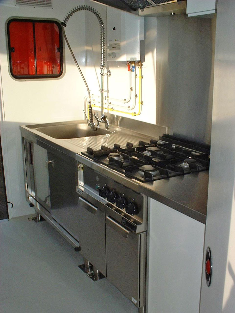 Une cuisine pour sauver des vies ! En février 2004 avec le véhicule SDIS Loire ; et avril de la même année pour le véhicule SDIS Lozère, nous avons conçu des cuisines adaptées à la restauration des pompiers. Qu’ils soient en intervention de longue durée ou en astreinte hors de la caserne, ces élaborations leurs permettent d’être au plus proches des sites d’interventions et dans les meilleurs délais.